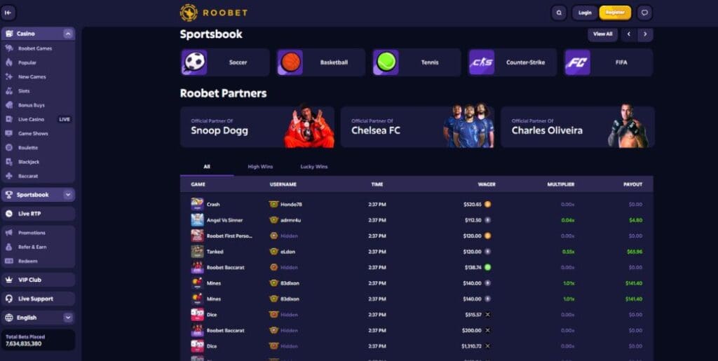 In addition to the already mentioned partnership with legendary American rapper Snoop Dogg, Roobet also has high-profile partnerships with the English Premier League’s Chelsea FC and Brazilian mixed martial artist Charles Oliveira.
