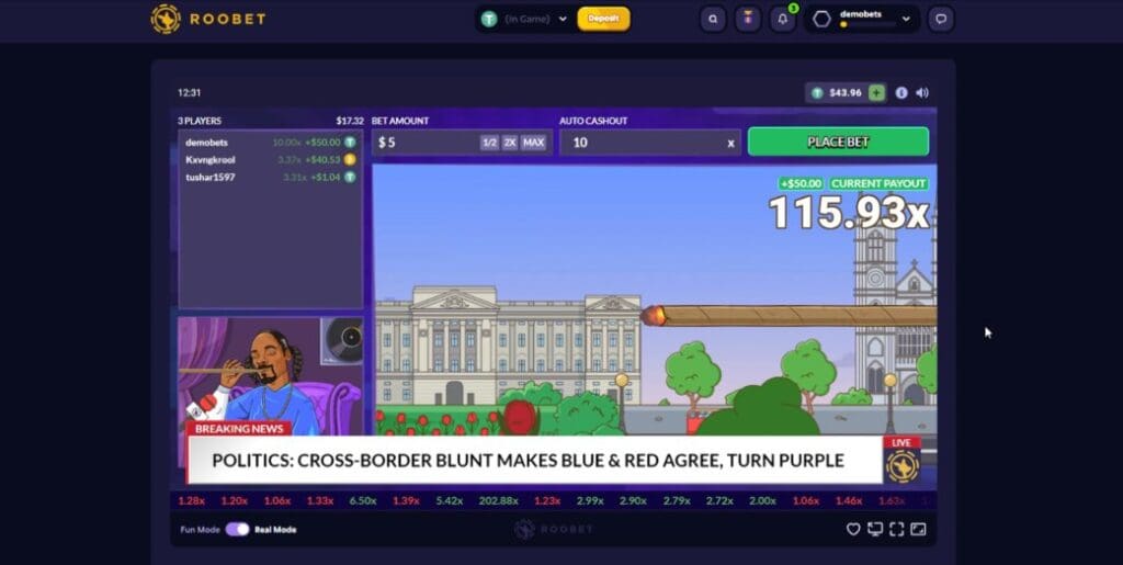 With Snoop Dogg being an official brand ambassador of Roobet, it makes sense he got his own game – and the theme was almost inevitable! Basically, it’s a crash game with a twist. Snoop is watching a rolling news network and smoking a potentially extremely long blunt. When Snoop stops smoking, the game crashes. This is a fun take on the crash genre, with a chilled theme and nice graphics. Unfortunately, when I initially tested it for this review I completely messed up – cashing out a $5 bet at $50, only to see the multiplier go on to hit over 137x, meaning I missed out on a $685 win. Oh well, as Snoop would say, “you gotta stay chill.”