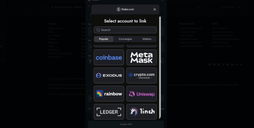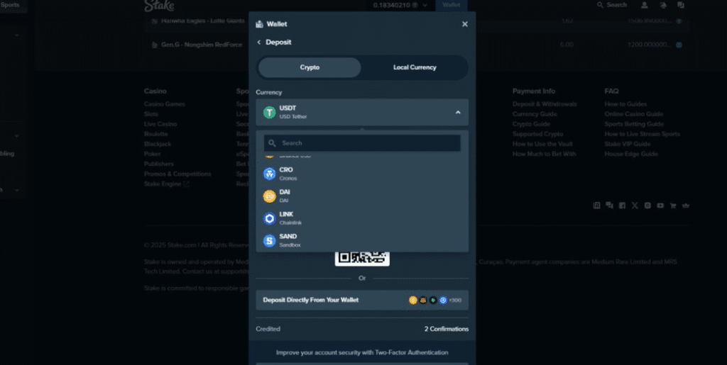 Stake supports a good range of cryptocurrencies, including mainstream cryptos and a few memecoins.