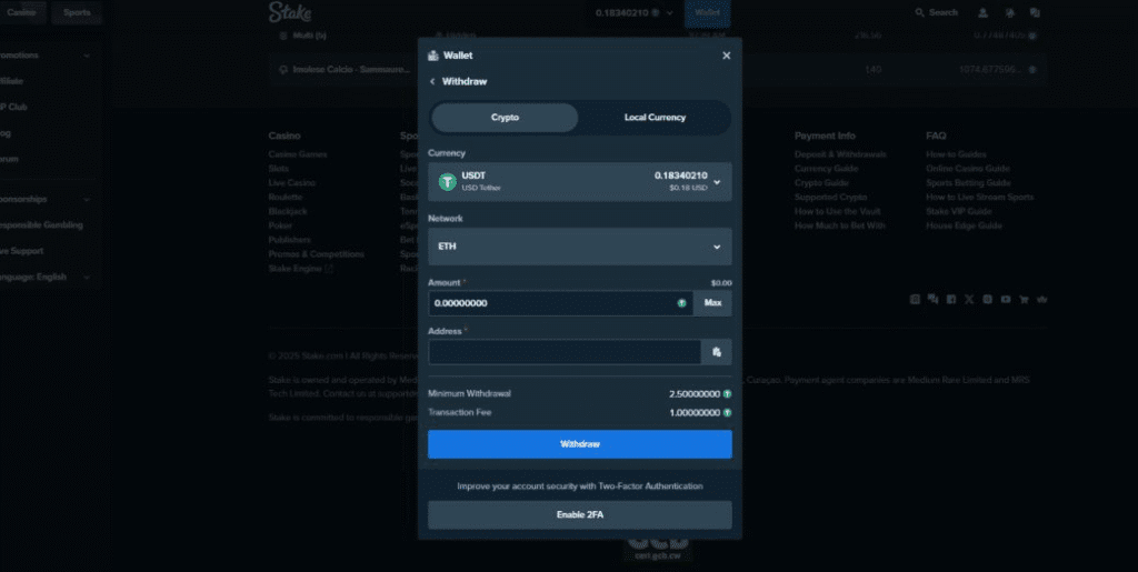 CoinBets.com Tip: Always double-check crypto wallet addresses after pasting them – you don’t want to fall victim to ‘PasteJacking’. This is when hackers exploit the copy-paste function to change wallet addresses to steal funds.
