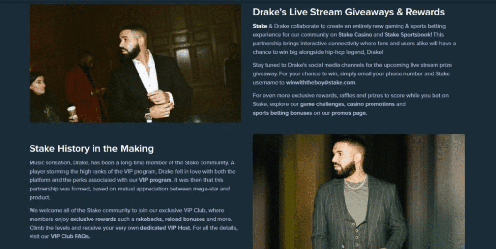 So, what are we seeing here? Well, Stake has got a pretty good reputation. Everyone knows who’s running things and plenty of big names are associated with the brand, so the business is generally conducted “above board.”