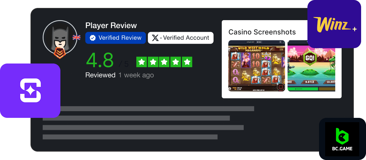 CoinBets is the only crypto casino review site where every player review is verified by our team to confirm real deposits and gameplay